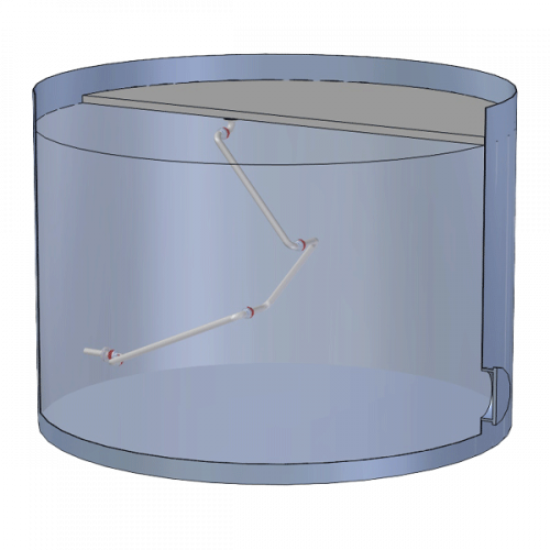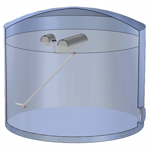 A floating suction unit is a pipe arrangement with swivel joints and a single float. The floater keeps the inlet opening positioned just under the surface of the liquid. This is where the liquid is cleanest.