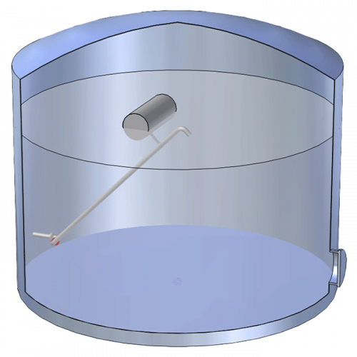 A floating skimmer is a pipe assembly with swivel joints and two floaters. Floating skimmers are used to skim off liquid contaminants floating on the product.