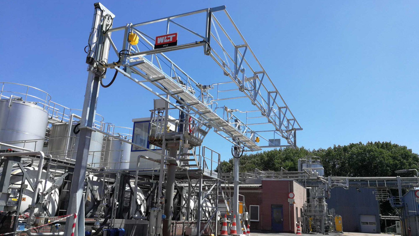 WLT liquid & gas loading technology B.V. fabrique des équipements de pointe pour le chargement de liquides et de gaz dans des navires, camions-citernes, wagons et autres (plus petits) moyens de stockage. Pour garantir également la sécurité de l’opérateur et du conducteur lors du chargement sur les camions-citernes et wagons, nous avons en outre développé un ensemble complet de systèmes de protection antichute.